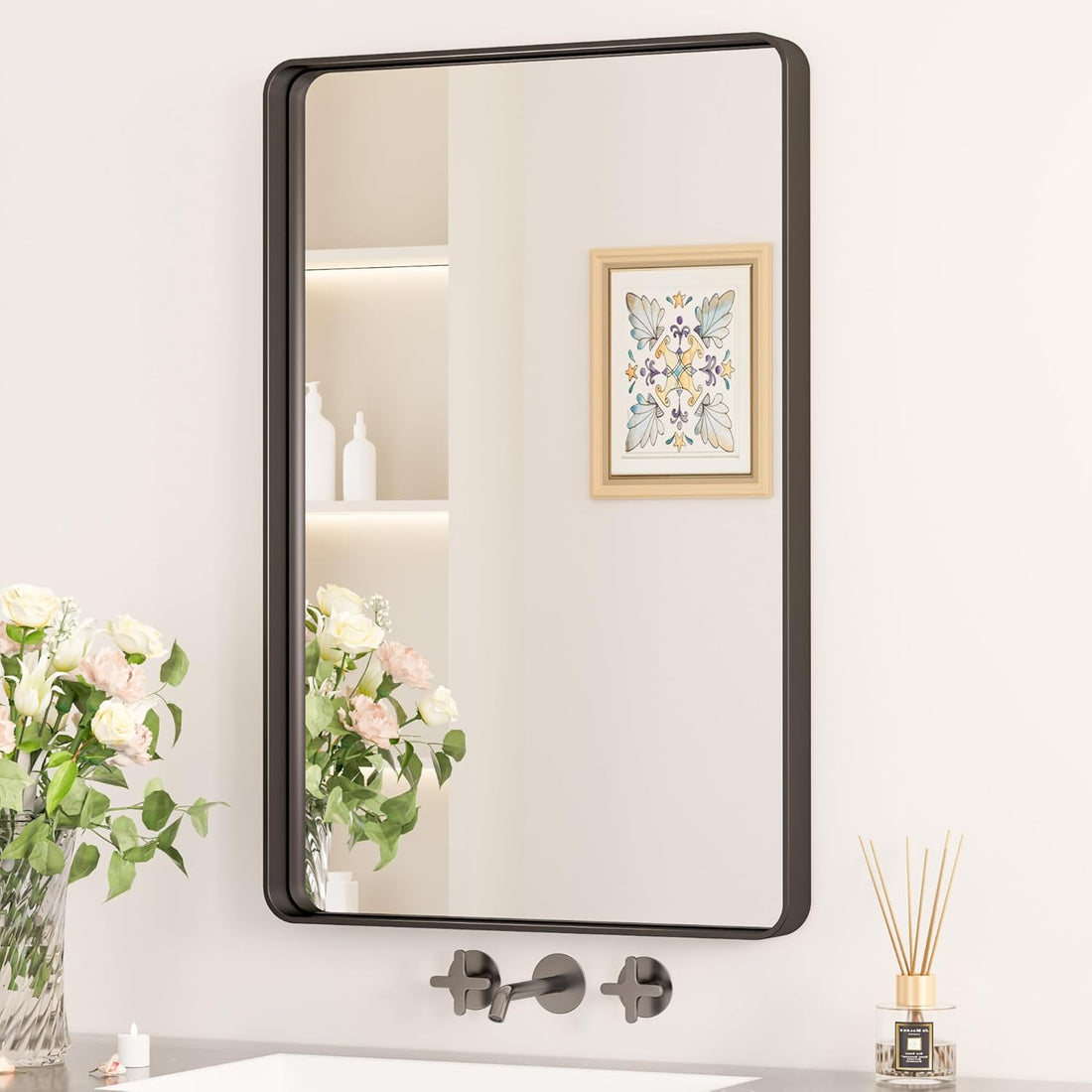 20" x 30" Black Bathroom Mirrors for Over Sink, Rounded Rectangle Bathroom Vanity Mirror