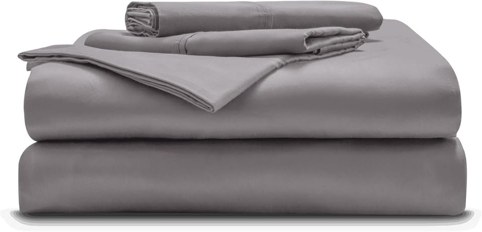 Miracle Luxe Soft Cotton Bed Sheet Set, 4-Piece Silver-Infused Cooling Fabric - Queen Size, Stone...