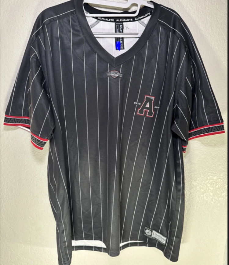 New ALPHALETE Men’s Varsity NFL Black Baseball Jersey ,size XS