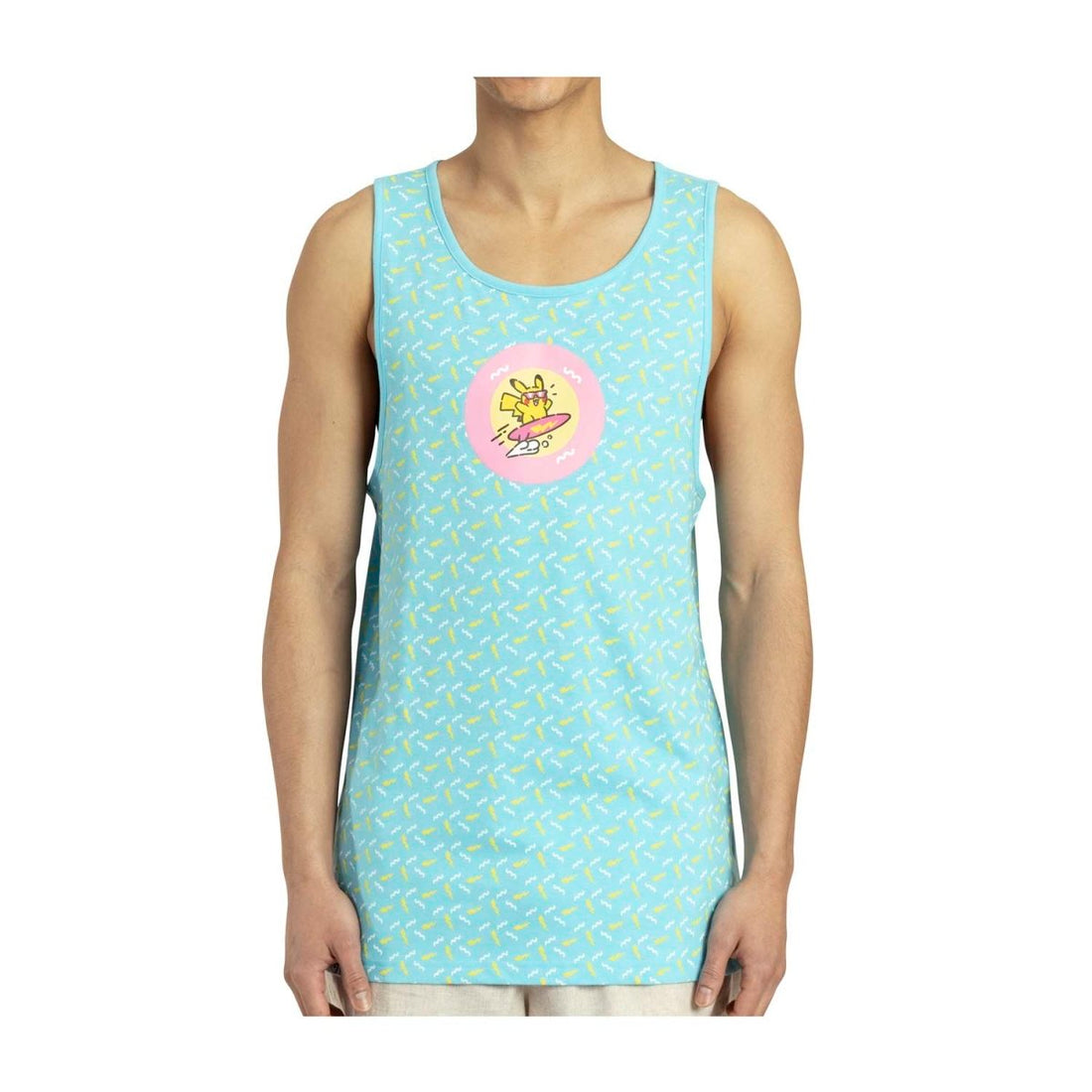 Pikachu Pokémon Lazy Summer Blue Fitted Tank Top - Men