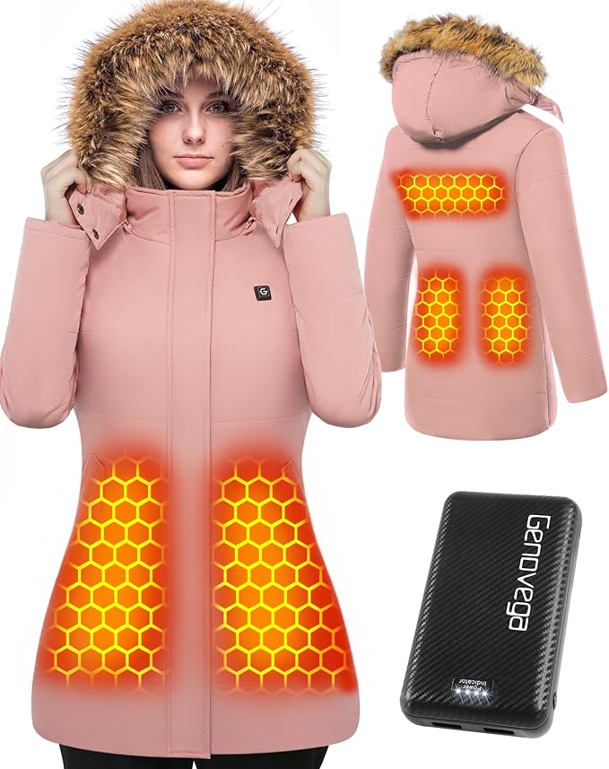 Women Puffer Heated Jacket Rechargeable 7.4v Battery Pack Charger Included ,Pink. XL [HIGH-TECH HEATING JACKET]:...