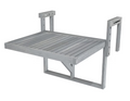 The Balcony Table is the perfect addition to a contemporary, modern balcony or deck space. The table dimensions are 24 x 18. Adjustable for railing widths up to 8. The table height can be adjusted from railing height to 42" bar height & 36" counter height suitable for bar stools suitable for bar stool chairs. It is hand-crafted from acacia hardwood, which has natural water-resistant properties, similar to Teak that is perfect for outdoor use. The Balcony Table folds flat for easy storage when not in use. Truly they are great accessories for fun outdoor living.