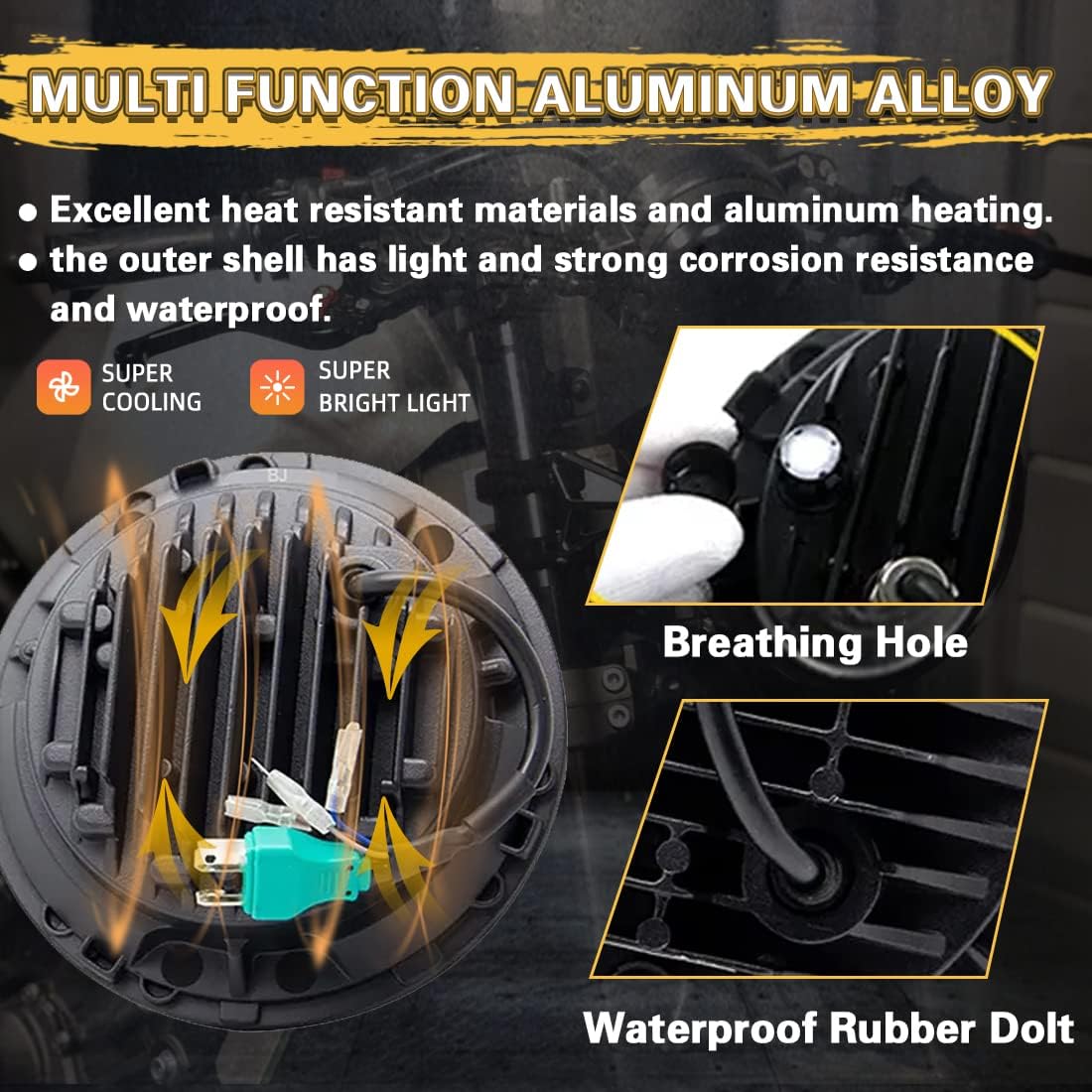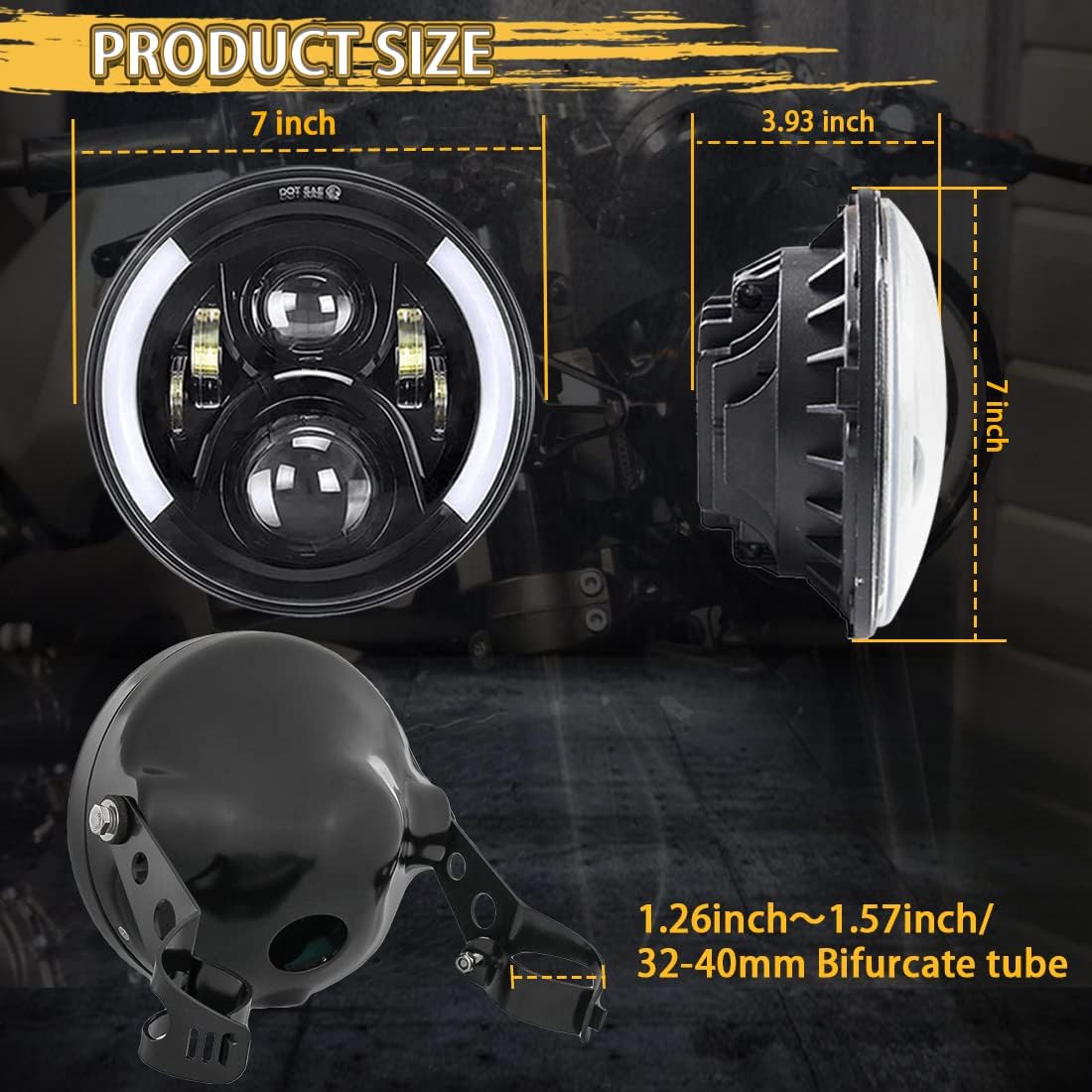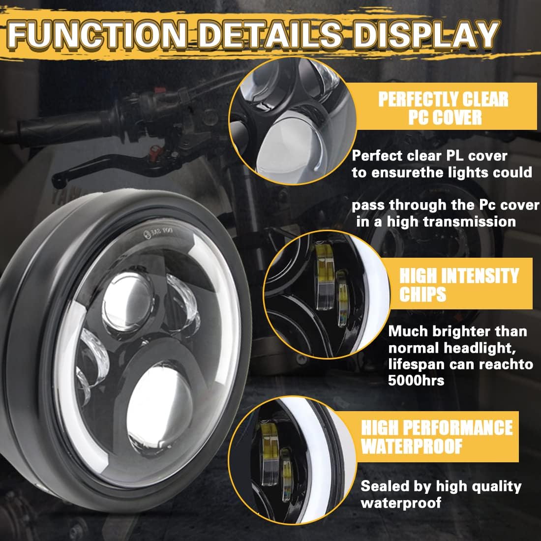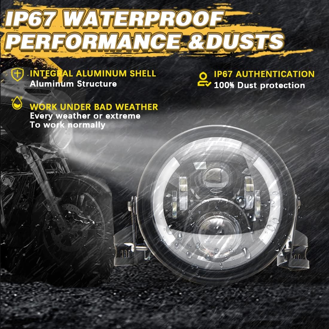 - 【Hign Performance】7" Round LED Headlight, High Performance High-Low Beam,White DRL,Amber Left/Right Turn Signal.