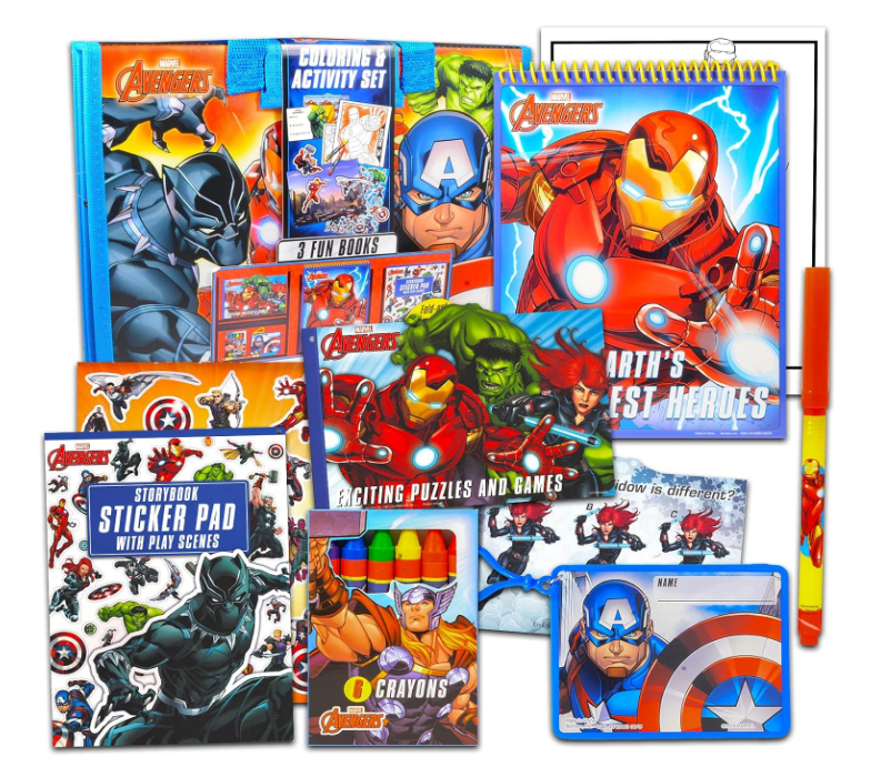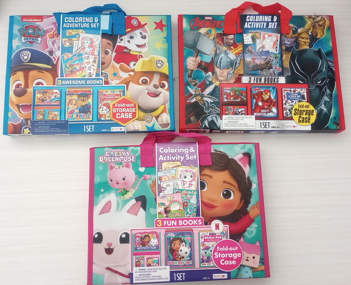 - Dreamworks Gabby's Dollhouse Ultimate Activity Set - Portfolio Bundle with Coloring Books, Stickers, Games, Puzzles, Drawing and More - Marvel Avengers Ultimate Activity Set ~ Superhero Portfolio with Coloring Books, Stickers, Games, Puzzles, Drawing and More - Paw Patrol Coloring and Adventure Set This giant activity set includes a spiral-bound coloring and activity book, mini puzzles and games book, storybook sticker pad, name tag with clip, 6 crayons, and 1 marker all in a ultimate tri-fold carrying case. The premium activity carrying case features a tri-fold format with pockets to securely hold books, activities, utensils and more. Carrying case measures 13" x 10" when folded. Use this coloring activity pack with stickers in a birthday gift set or in a travel activity set. Sticker and coloring activity books each feature favorite characters.