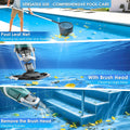 - POOL CARE - Detachable bottom brush head, two cleaning methods; Facing different cleaning environments can be easily accomplished, efficiently cleaning spas, inflatable pools, and hot tubs, cleaning leaves, mud and sand in the pool, small bugs, above ground pools/spas/hot tubs, not suitable for long time cleaning algae, easy to clog the filter, suggest to use a fishing net to clean algae.