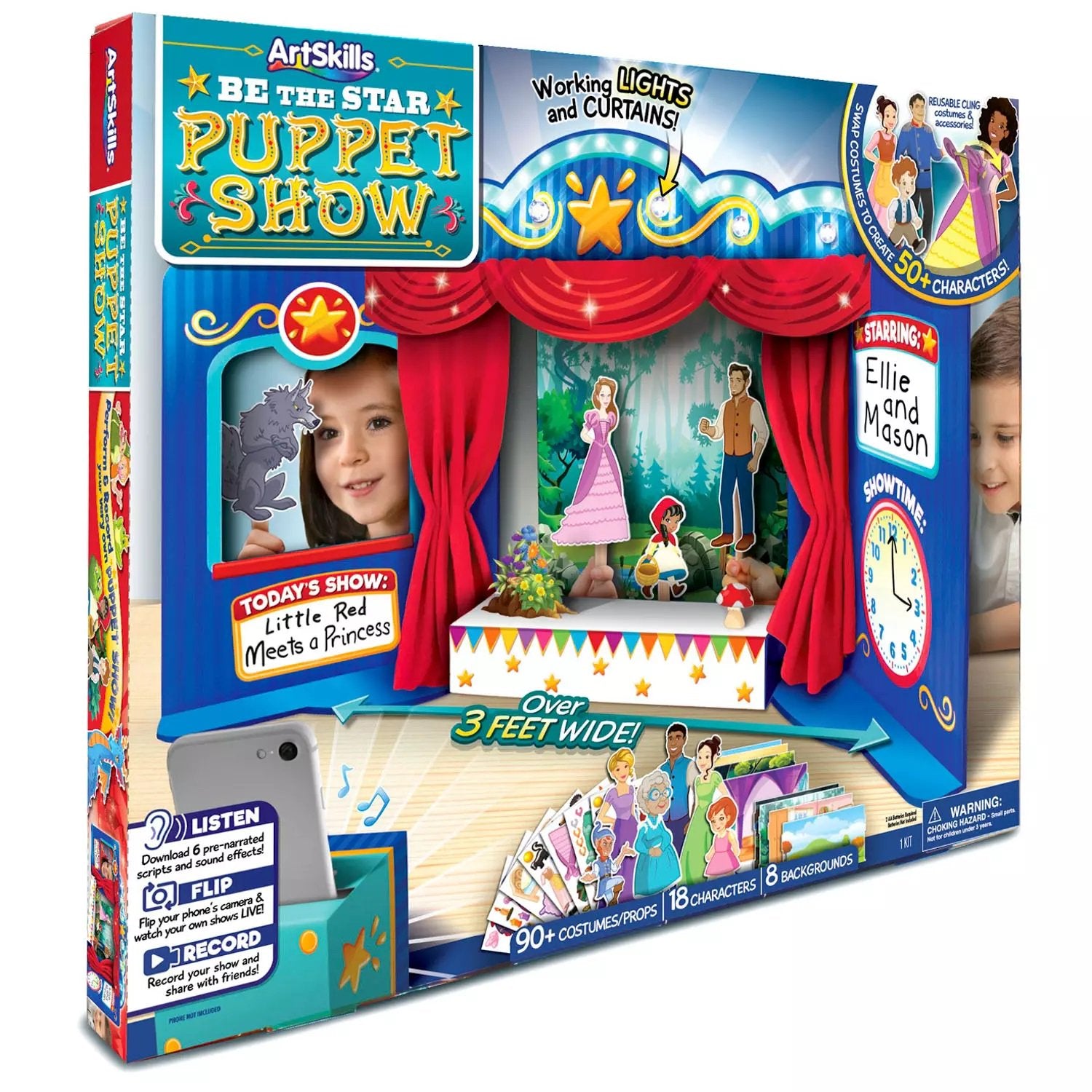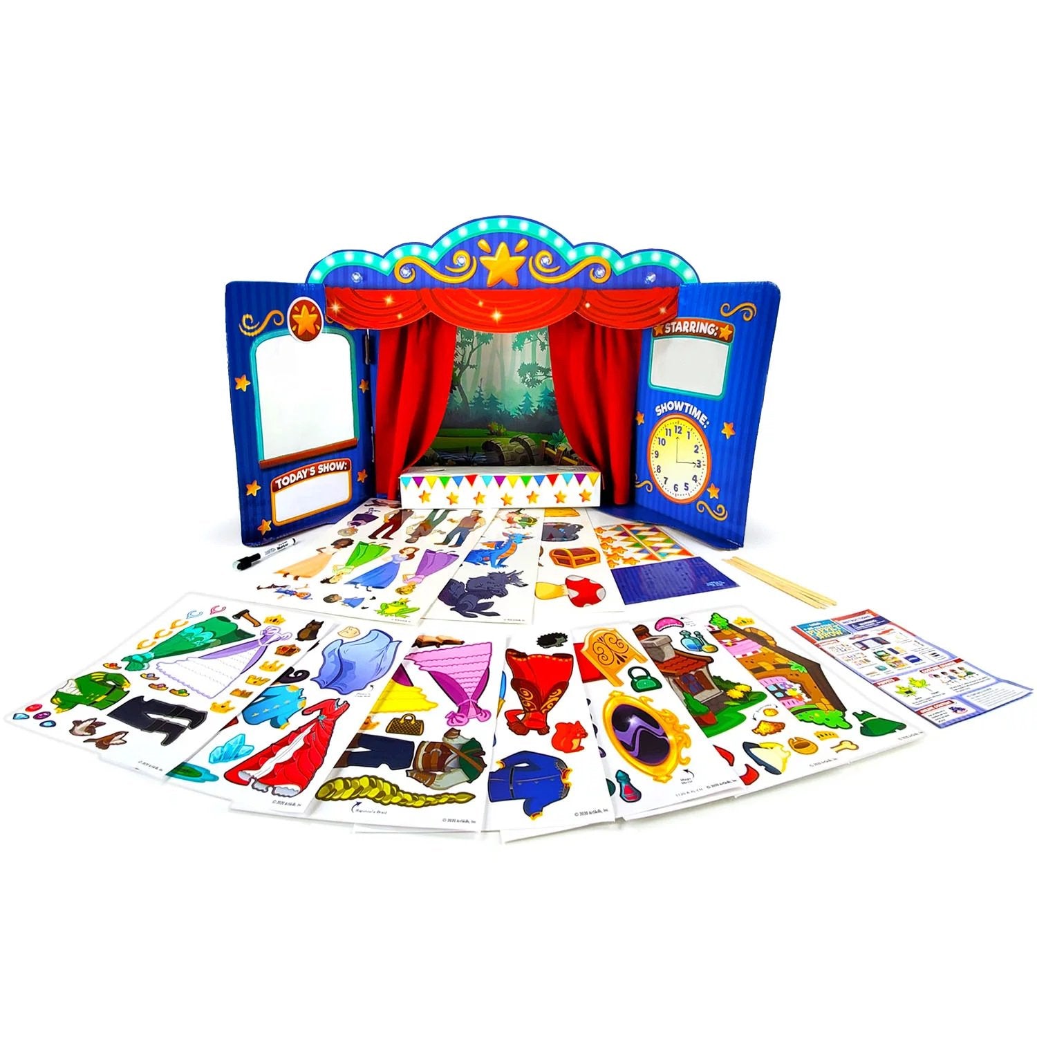 Your child can be the star of their own play with the ArtSkills Puppet Show. This DIY Theater Play Set has everything needed to create a show-stopping, imaginative activity. With hundreds of combinations of set backdrops, characters, outfits, and props, the creative possibilities are truly endless. Kids can perform plays alone, with a friend or sibling, or in front of a live audience.