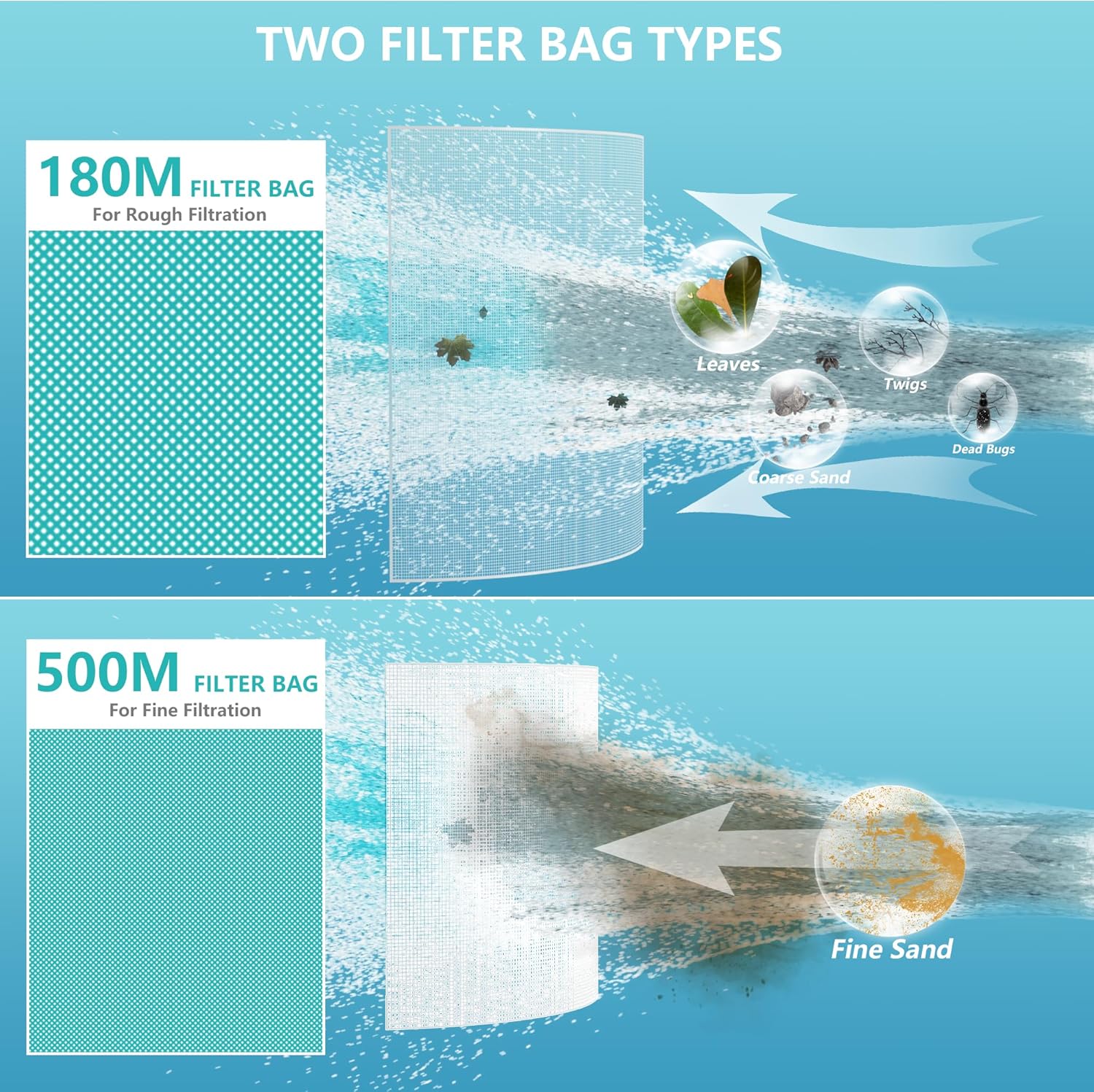 - 【3-step Assemble & Use】FOTING pool vacuum operates simply: attach to a handle, activate, submerge the outlet, and clean (max water temp 122℉). Features a tool-free assembly, removable filter screen, and includes (0.53-gal) filter pockets, USB cable, telescopic aluminum pole, and color packaging