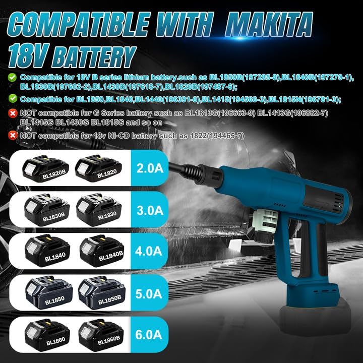 Cordless Pressure Washer Compatible with Makita 18V Battery, 700 PSI Portable Handheld Power Washer with 6-in-1 Nozzle Foam Cannon for Car Floor Fence Wall Cleaning (No Battery)