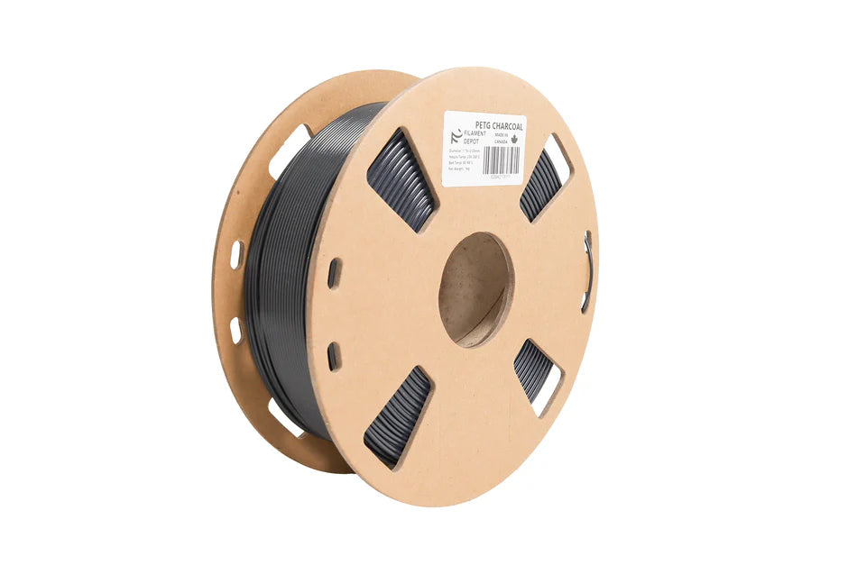 1kg (2.2lbs) spool of Standard PETG filament manufactured in Canada vacuum sealed with a desiccant pack.