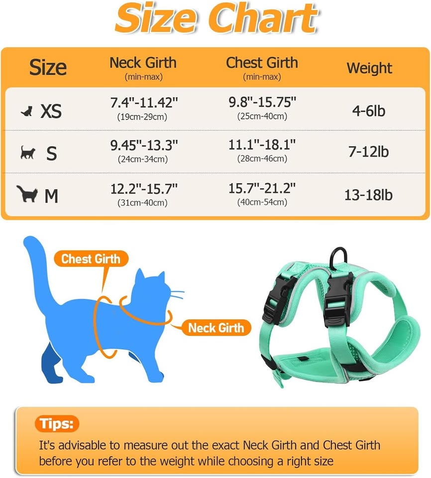 Halypet Cat Harness and Leash Set Cat Harness for Walking, Adjustable Breathable Travel .S Green