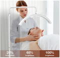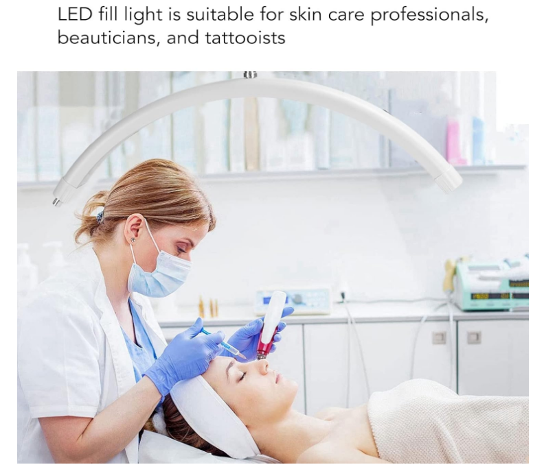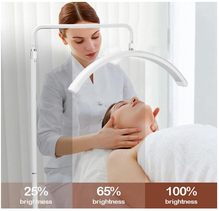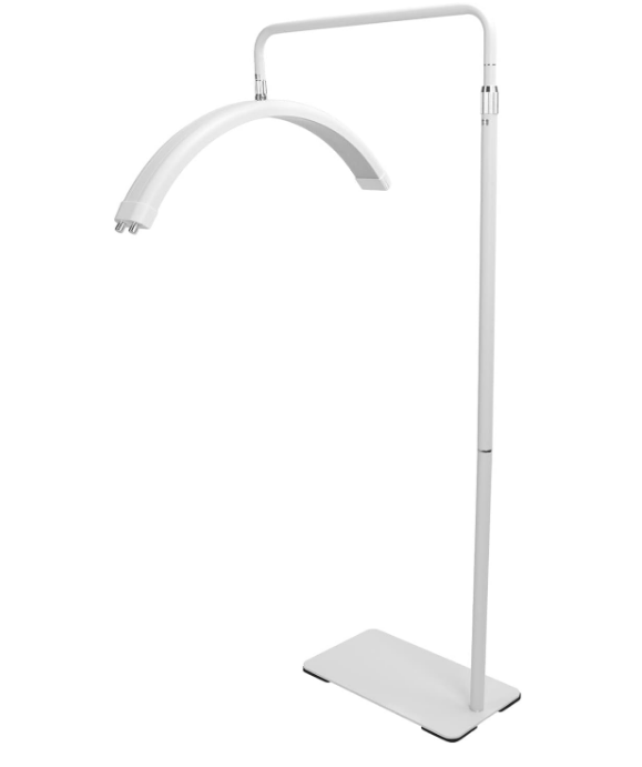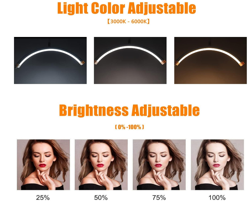 Beauty Salon LED Light, 28 Inch Half Moon Shaped Fill Light Adjustable Color Temperature Brightness Half Ring Lamp with Bracket White Aluminum Alloy Lamp Holder: Equipped with an aluminum alloy lamp holder, the lamp holder can be adjusted from 125cm to 180cm to meet your height requirements. LED Lamp Beads and Half Moon Shape: LED lamp beads provide a stable image without flickering, and the curved design can reduce shadows and more protect the eyes. Adjustable Color Temperature and Brightnes: The color temperature of the half moon light is adjustable from 3000K to 6000K, and the brightness can be adjusted from 0 percent to 100 percent. Applicable People: Half moon beauty light is suitable for skin care professionals, beauticians, and tattooists. It is a flexible and portable lighting device for beauty and makeup artists. With A Mobile Phone Holder: Equipped with a mobile phone holder, it can be fixed to facilitate your recording of videos or live teaching.