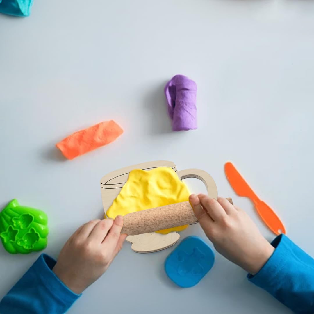 Little Genius Wooden Clay Stamp & Rolling Pins Set, 3 Years & Above, Preschool Toys
