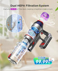 MQDXE Cordless Stick Vacuum Cleaner: 550W Powerful Suction, LED Display, 55 Min Runtime, Anti-Tangle Brush, Rechargeable Battery, Lightweight for Home, Pet Hair, Hard Floors, Carpet 【550W Ultra-Powerful Suction – Deep Carpet & Hard Floor Cleaning】Our cordless stick vacuum cleaner deep clean with true suction.Effectively removing deep-embedded dirt,pet hair,and debris from high-pile carpets,area rugs,and hard floors without loss of suction.(3-Level Suction Control: Low (Daily Cleaning) Medium (Carpets) High (Deep Cleaning, Maximum Suction). 【55-Min Long Runtime & Swappable Battery for Extended Cleaning】Uninterrupted cleaning for large homes.The removable, rechargeable battery provides up to 55 minutes of runtime,ideal for whole-house cleaning.Easily swap batteries to double your cleaning time.( This cordless vacuum cleaner delivers up to 50 minutes of runtime on low mode and 22 minutes on high mode) 【 Anti-Tangle Brush – No More Stuck Pet Hair】Self-cleaning brush roll for hassle-free pet hair removal.The upgraded anti-tangle brush prevents 99% of hair wrap,making it perfect for homes with shedding pets.This cordless stick vac is perfect for pet owners. 【 Dual HEPA Filtration – Captures 99.9% of Allergens】Breathe cleaner air. The dual HEPA filtration system traps 99.9% of allergens,dust mites,and fine particles, improving indoor air quality for allergy sufferers and pet owners. 【LED Flex Head – Precision Cleaning in Dark Corners】See & clean hidden dirt.The LED brush head illuminates dust in dark areas, making it effortless to clean under furniture,along baseboards, and tight corners.(Tip: Regularly clean the brush head to prevent tangling and ensure smooth performance.) 【 Space-Saving Design - Clean Anywhere Store Everywhere】 Equipped with a 2-in-1 brush (dusting + crevice tool), telescoping wand, and wall-mounted dock, this compact vacuum system tackles floors, car interiors, furniture gaps, and daily messes while fitting seamlessly in tight spaces. Perfect for clutter-free storage in apartments, dorms, or offices.