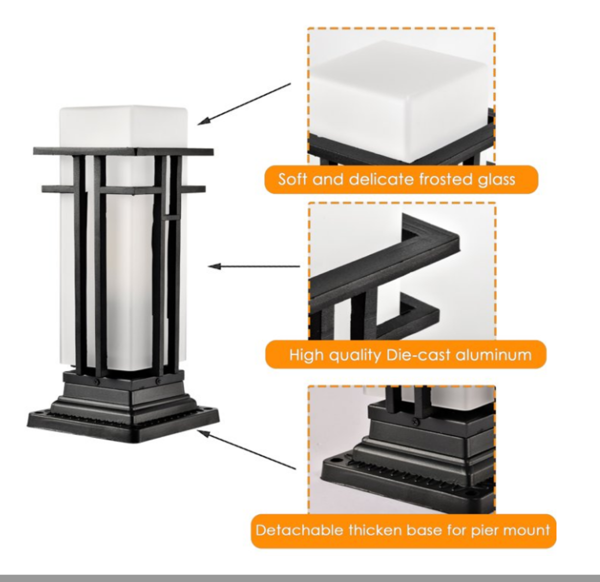 Outdoor Post Lights Fixtures Black Exterior Lamp Post Lantern, Waterproof, Aluminum, Matte