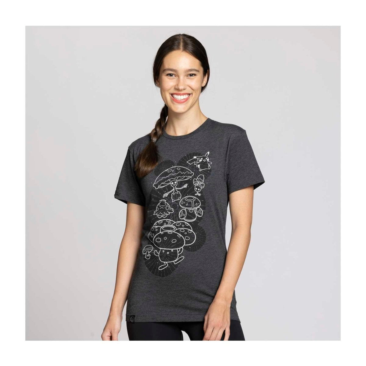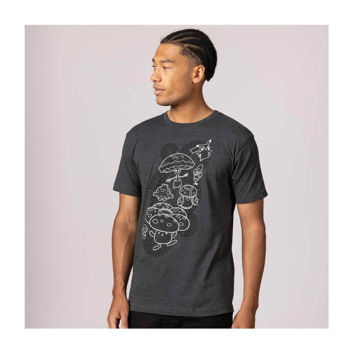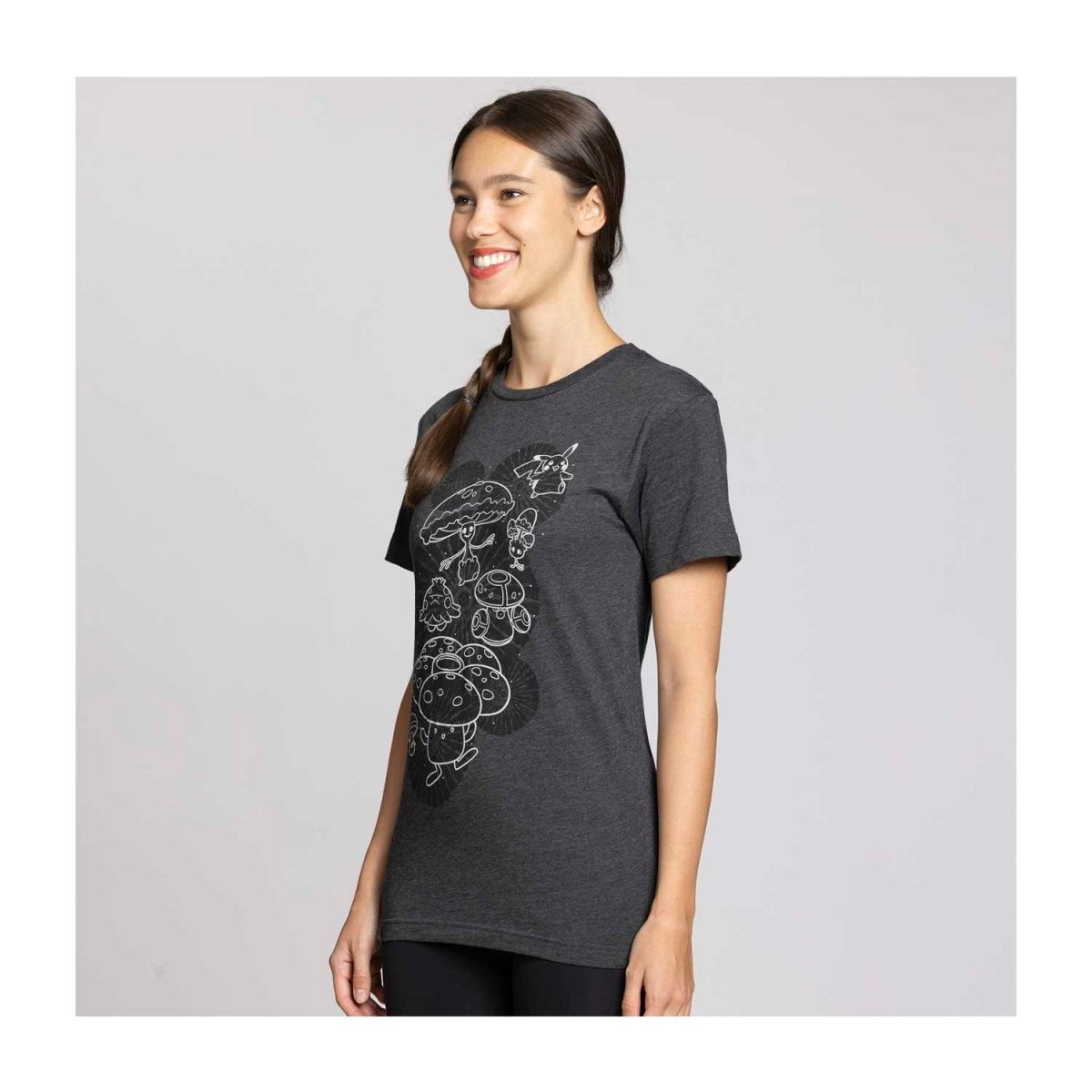 Deep in the heart of the forest, Pikachu and some Grass-type friends are enjoying nature together! Join in on the fun with this cotton-blend tee that also includes Morelull, Foongus, Vileplume, and more!
