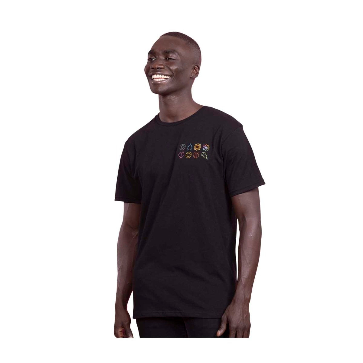 Owning all eight badges from a single region in the Pokémon world is a representation of a Trainer's true strength! Now you can display your might proudly with a Kanto Gym Badge T-shirt! Each of Kanto's eight colorful badges is outlined in embroidery on the upper corner of the T-shirt on a black background. The simple design makes this a nice choice on any day.