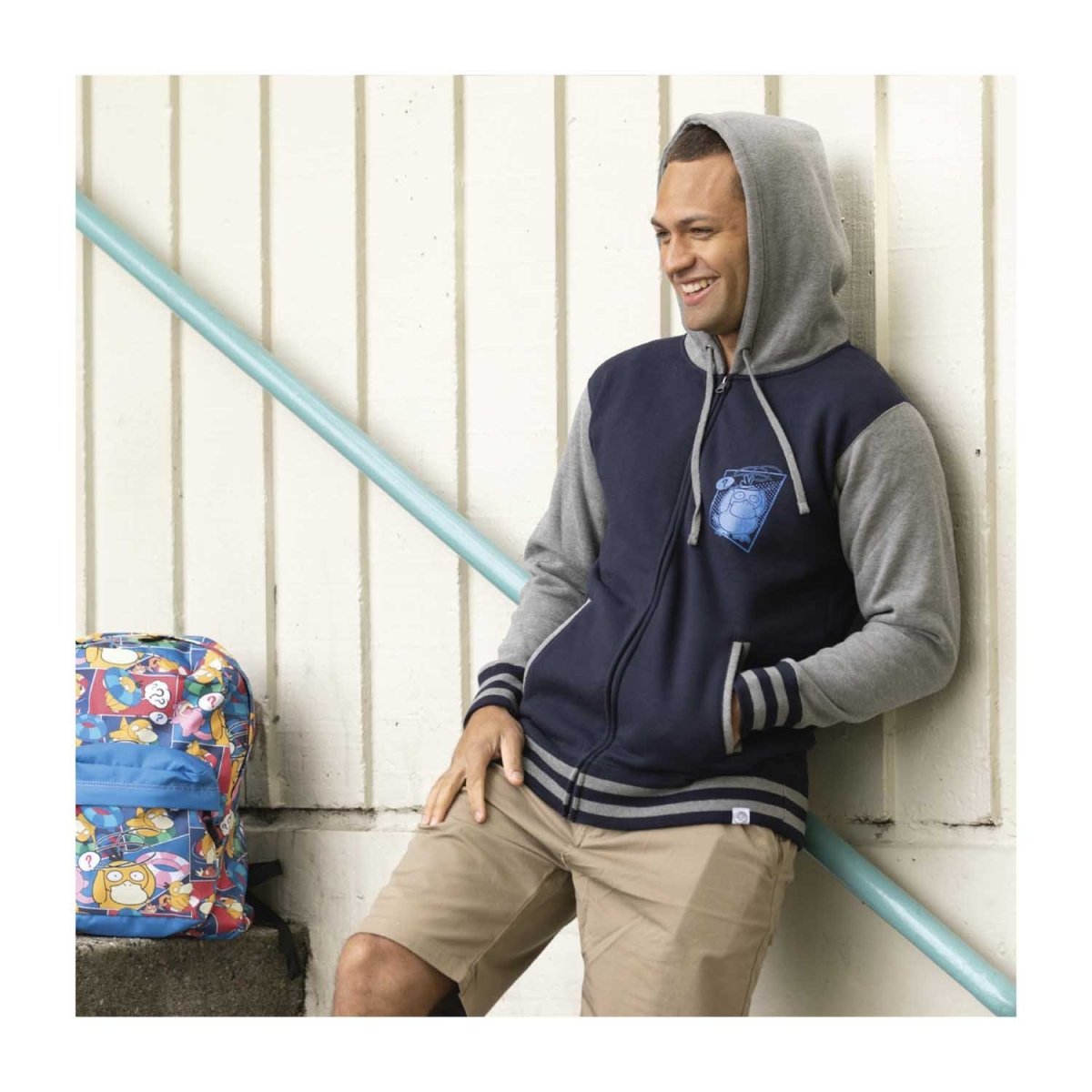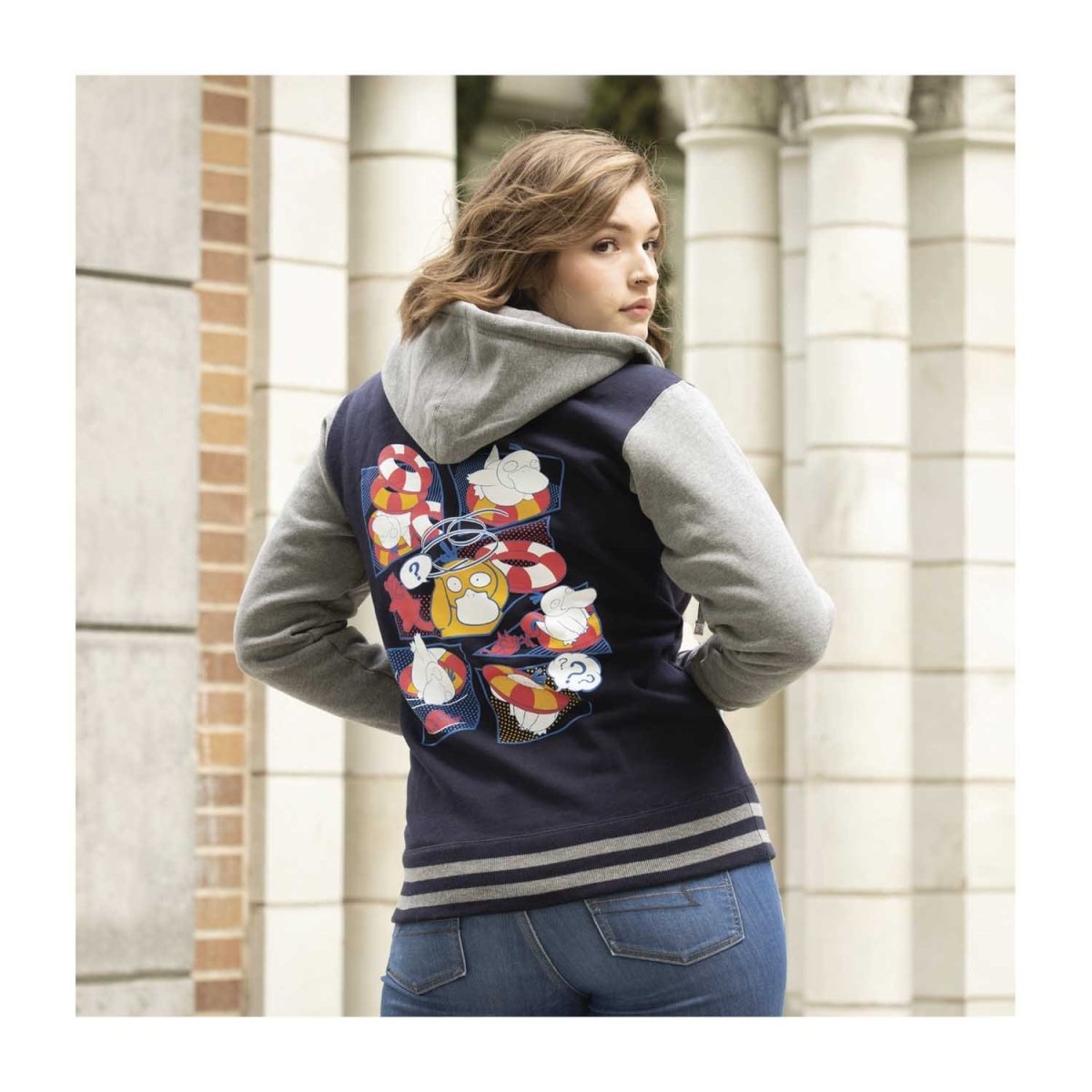 Psyduck is often bewildered, and everyone loves that confused Pokémon that keeps trying! This fleece varsity hoodie brings the fun and humor of Psyduck to a big, eyecatching design. Add a bit of humor to your life and show some love for Psyduck with this comfortable two-tone jacket!