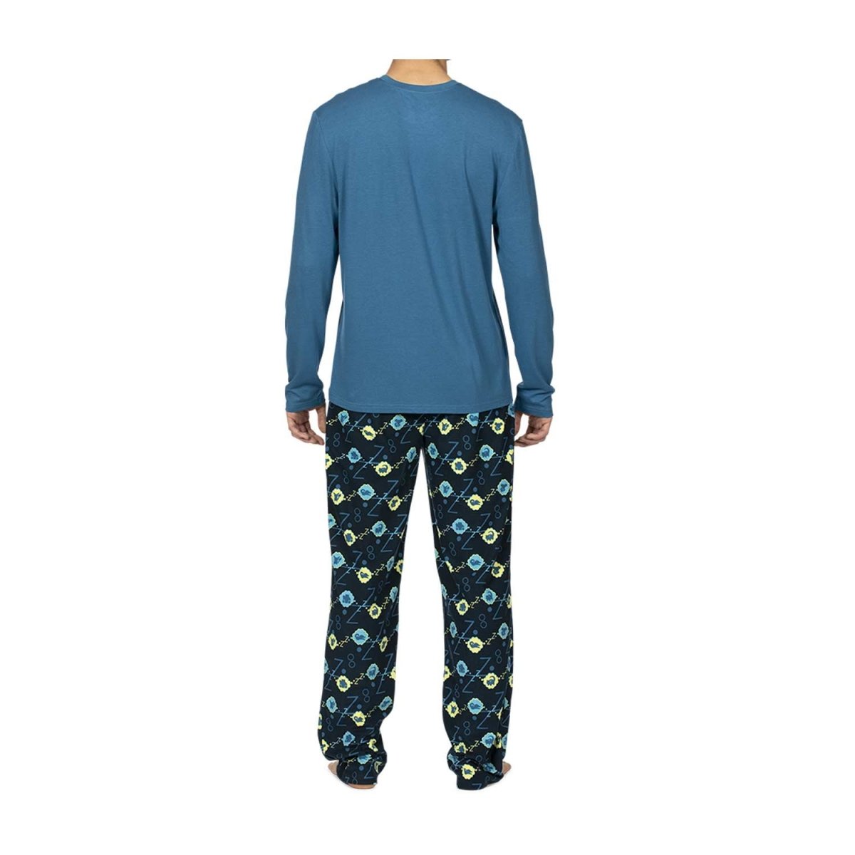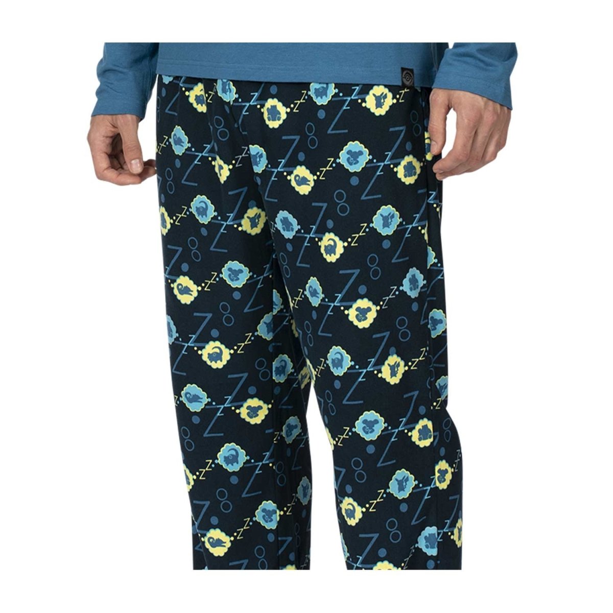 Pokemon Centre Sleeping Snorlax Blue Long-Sleeve T-Shirt & Navy Microjersey Pants - Men.
