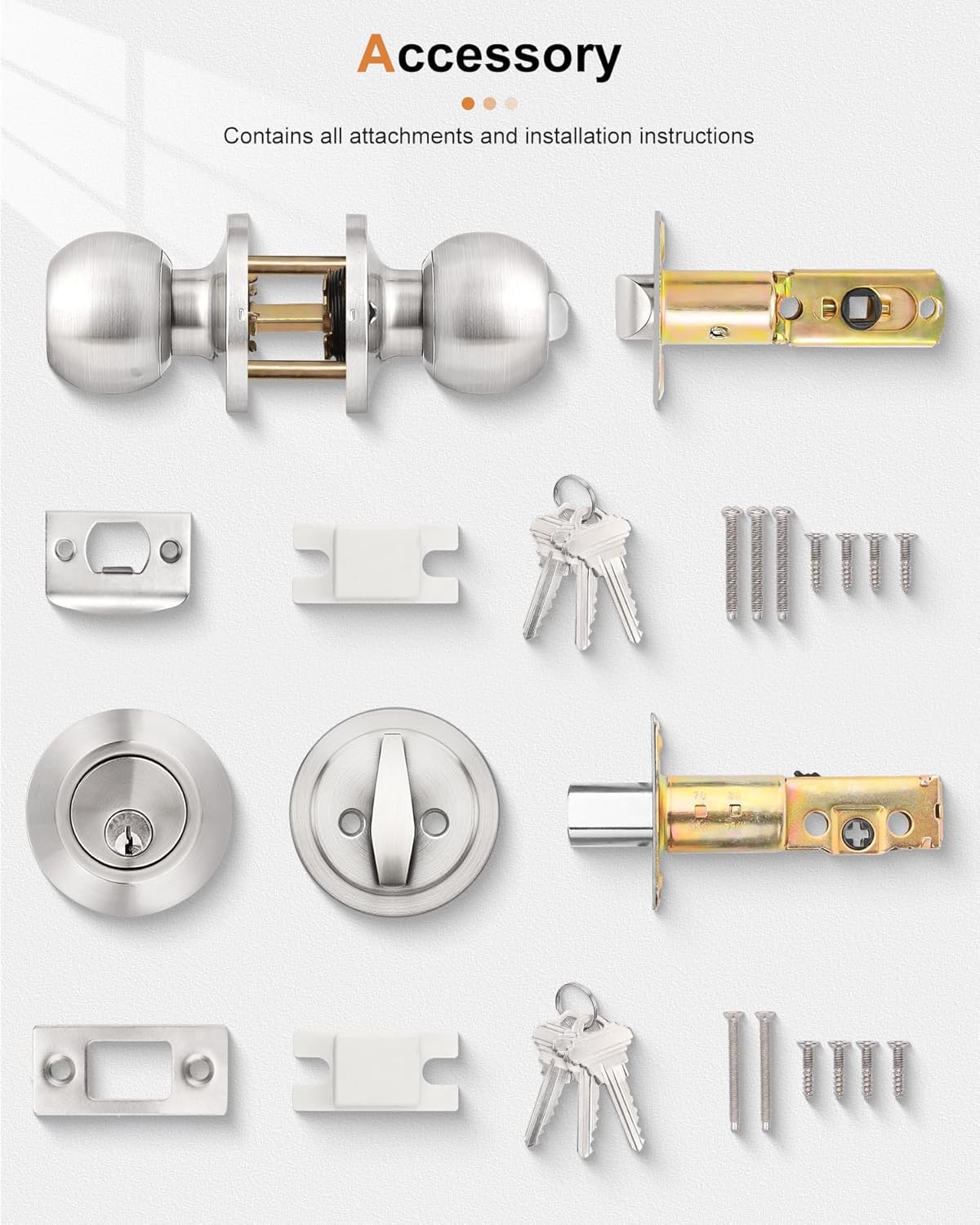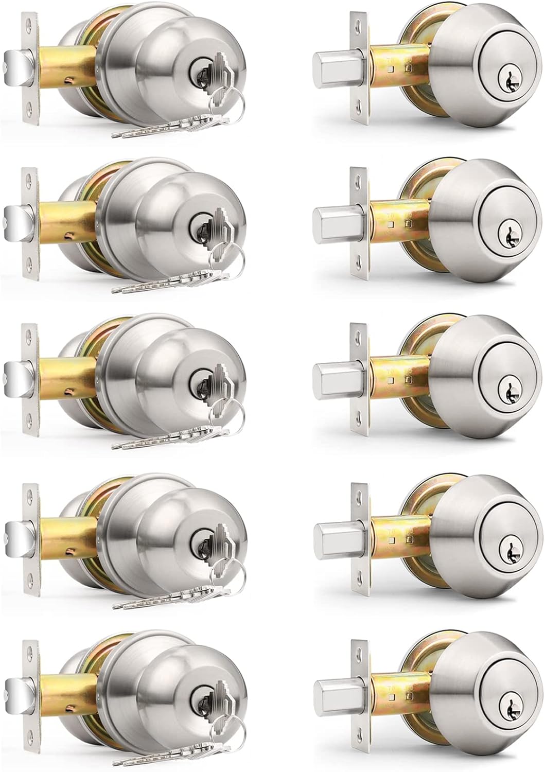 NEW Probrico 5 Sets-Keyed Alike Entry Door Knob with Single Cylinder Deadbolts, Keyed Handleset for Front Door Exterior and Interior Hardware,