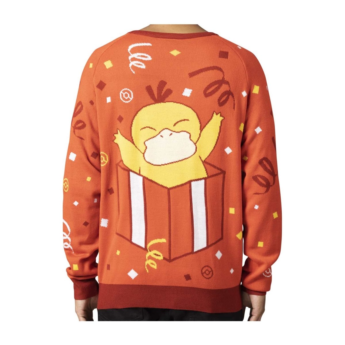 Psyduck has a holiday gift to share, but it can’t remember what it is… Oh! It’s a hug! The perplexed Psyduck on the front of this cozy red sweater complements the happy Psyduck popping from a giftbox on the back, taking this festive look to the next level. Ribbing at the neckline, cuffs, and hem helps to seal out the cold, and it enhances the classic styling, too!