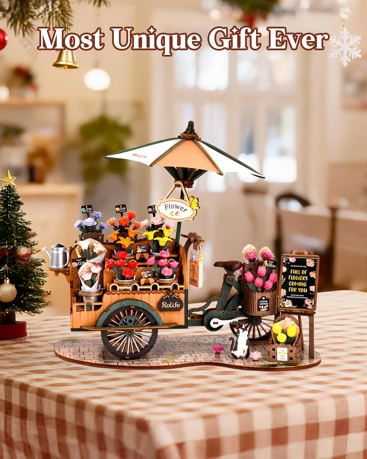 Rolife 3D Puzzles for Adults Wooden-Model Building Kit Flower Cart TGS03