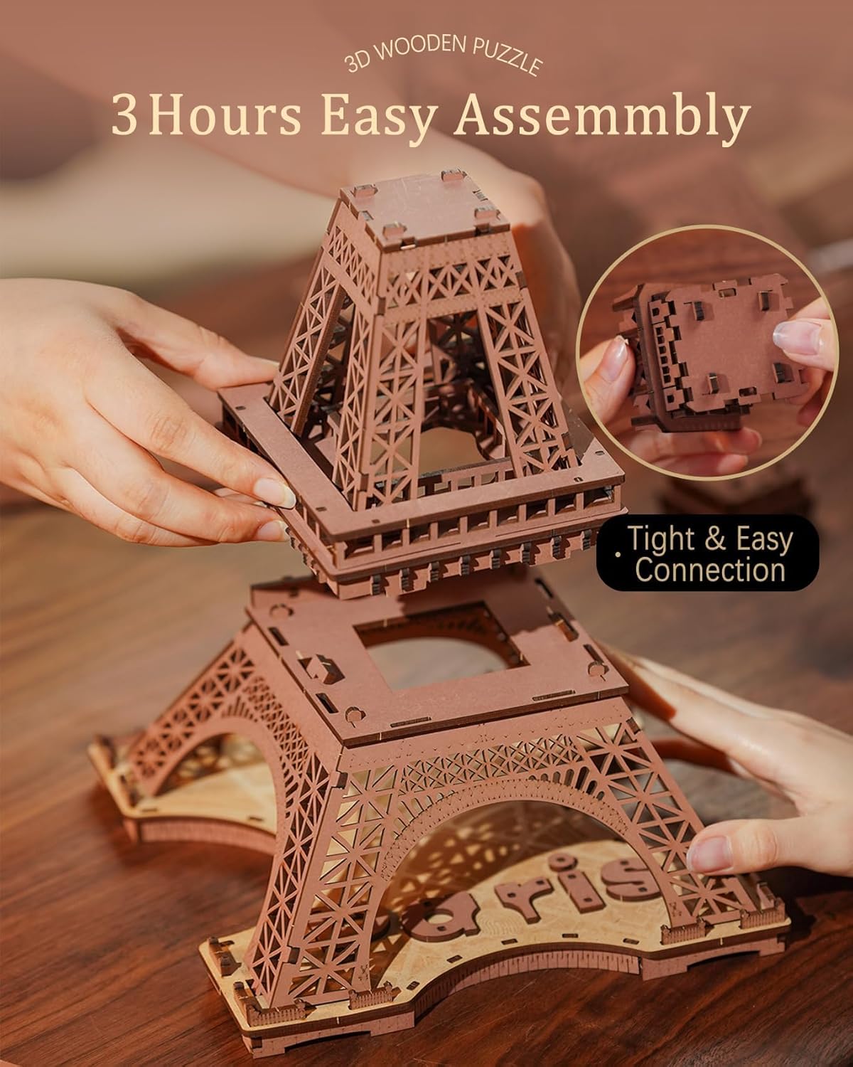 - [Rolife 3D Wooden Puzzle] Our design team improved the craft of normal model kits. Compared with other wooden Eiffel Tower sets, this one has a larger size, more LED lights,assembles faster, and is also more stable.