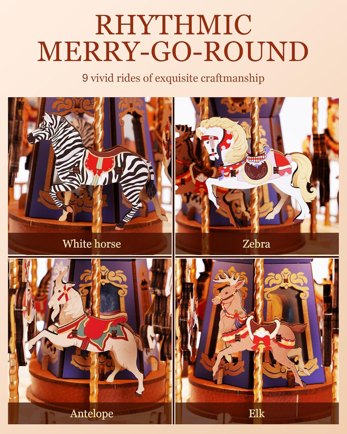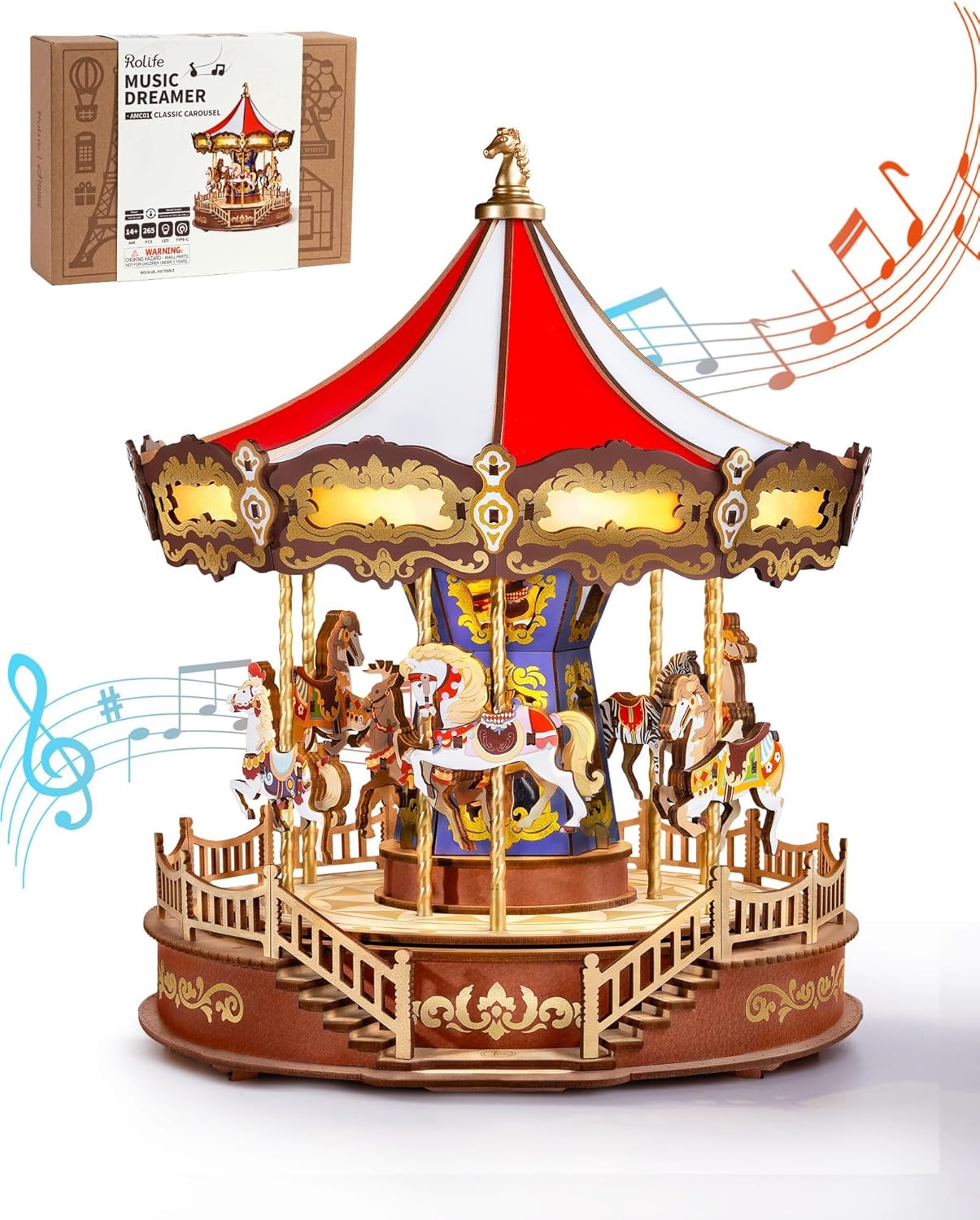 Rolife DIY 3D Wooden Puzzle for Adults, Classic Carousel Wood Puzzle Music Boxes AMC01