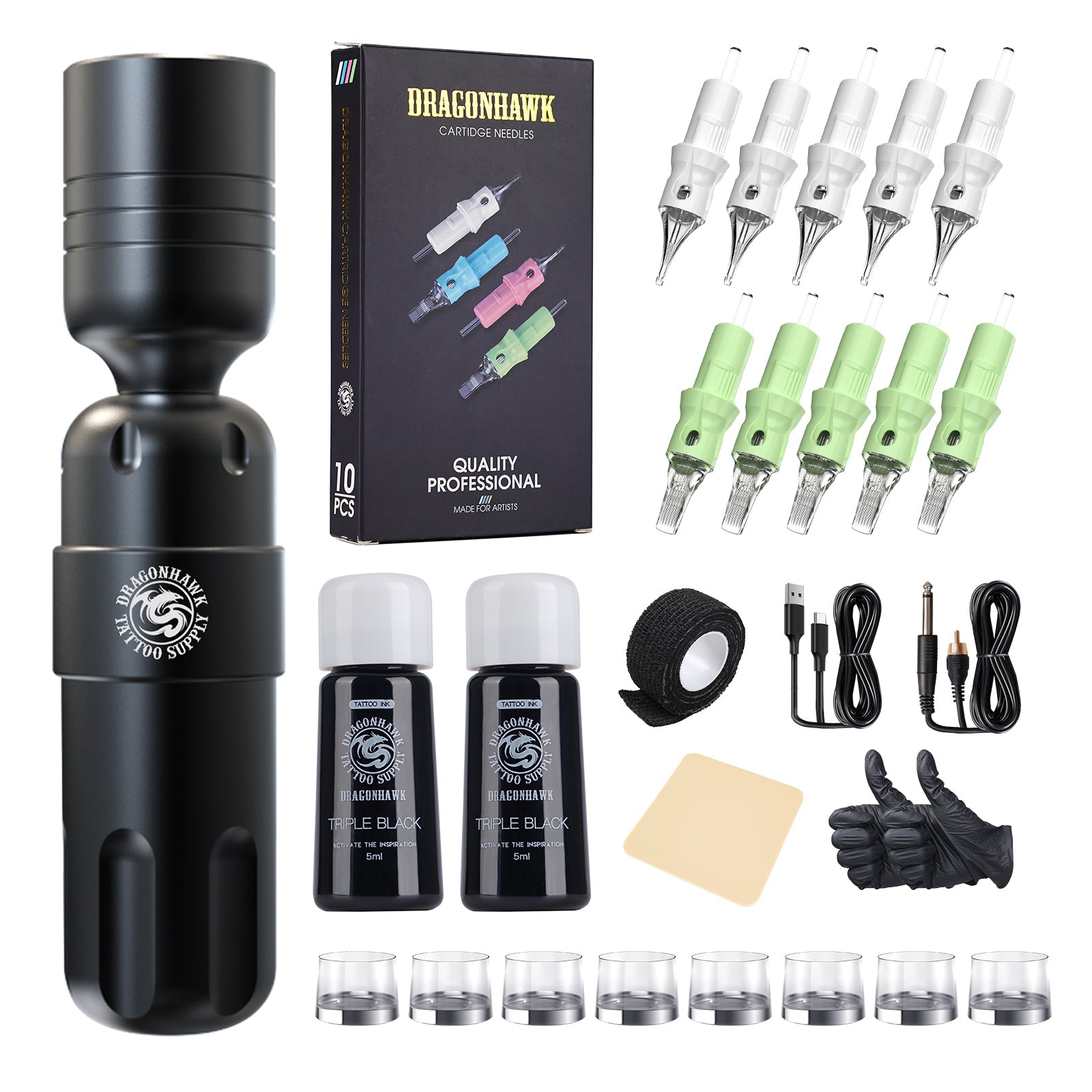 Tattoo Kit Dragonhawk S8 Wireless Tattoo Machine Starter Bundle