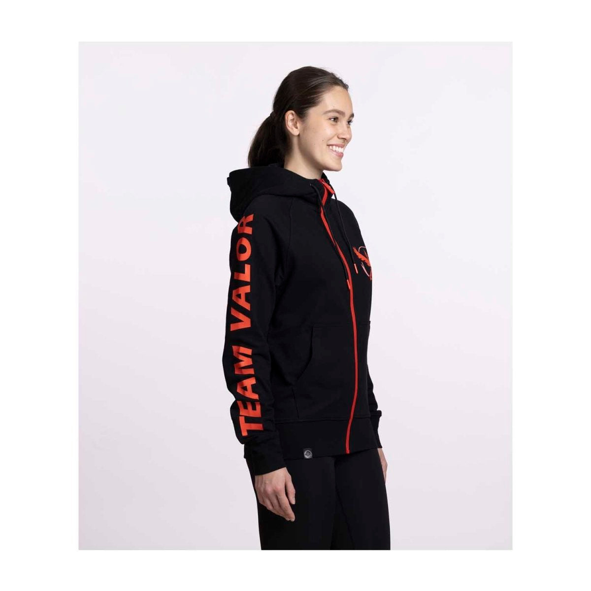 Go show off your brave Pokémon GO team spirit and display your emblem with pride on a Team Valor zip-up hoodie! This black hoodie features the red Team Valor logo over the upper-left chest with a red zipper from top to bottom; the right sleeve has "TEAM VALOR" written in big red letters. With a shirt like this, people will know what team you're on whether you're entering a Raid Battle, walking around town, or relaxing in the cool weather.