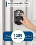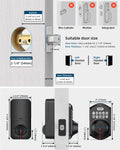 - Security Deadbolt: Provides reliable home protection with its sturdy aluminum alloy construction, weather resistance (IP54), durability, anti-peeping user code protection, low battery indicator, and solid lock cylinder. Our deadbolt smart lock is only suitable for 2-1/8" (54mm) door holes, and is not compatible with 38mm door holes