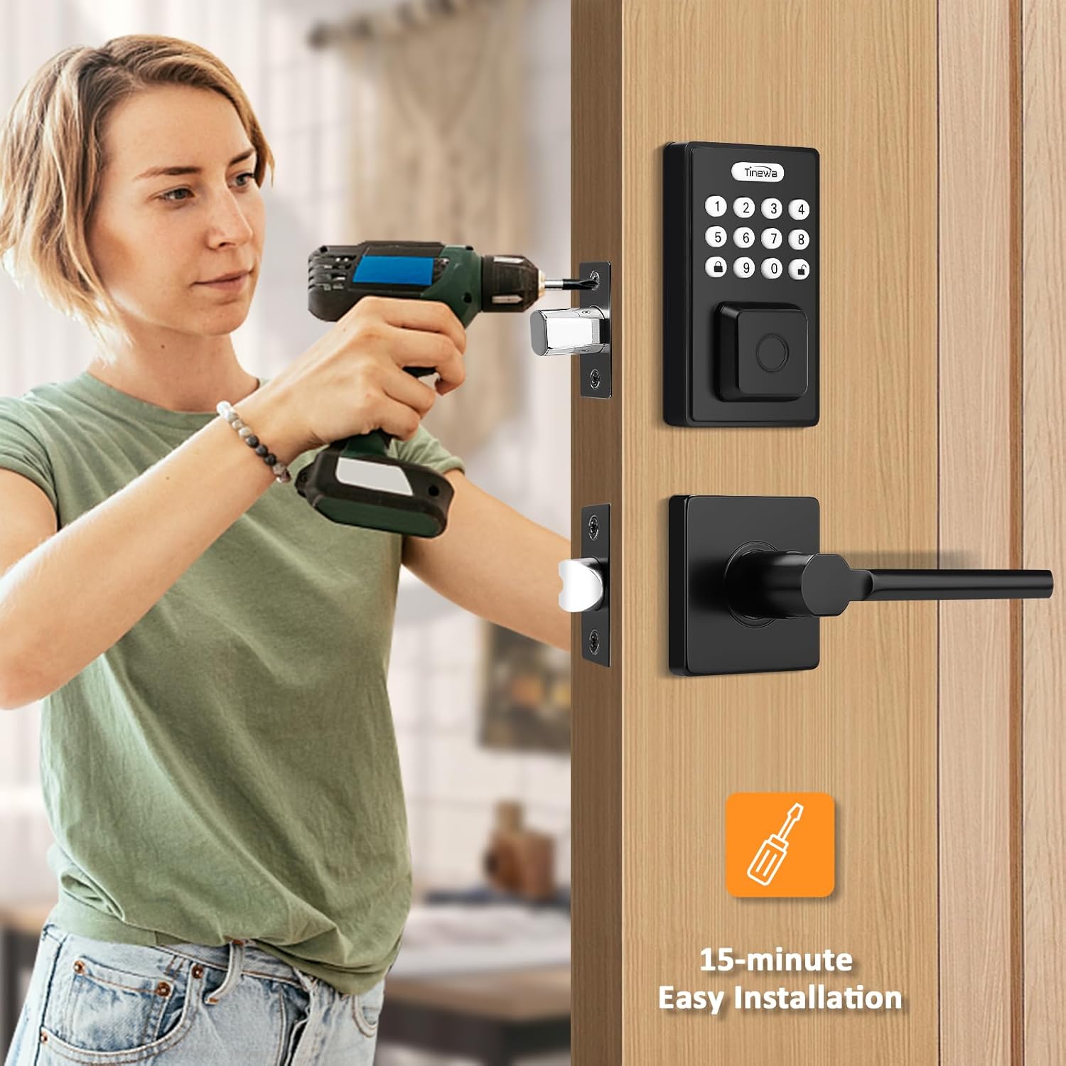 Tinewa (DLE602) Fingerprint Front Entry Door Lock, Exterior Smart Door Lock for Home