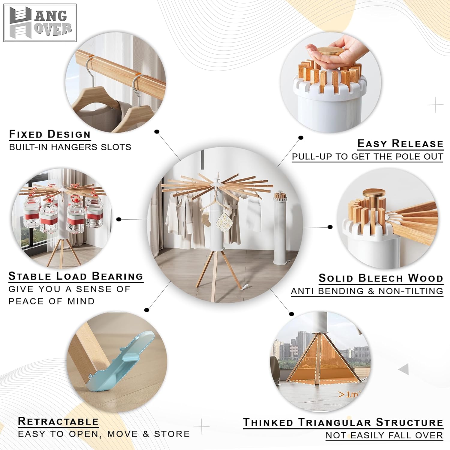 - π 360-DEGREE ROTATION >>> Use HangHover Tripod clothing rack to air dry your clothes, towels, socks & underwear without stress and save expensive energy. Its drying arms turn 360 degrees effortlessly even when fully loaded with wet washing.