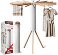 - DURABLE WOODEN ARMS: Featuring 16 sturdy wood rods, this drying rack is perfect for hanging various items like towels, sweaters, and even umbrellas. Ideal for travel and camping, it's a must-have for those on the go, offering a reliable clothesline wherever you are.