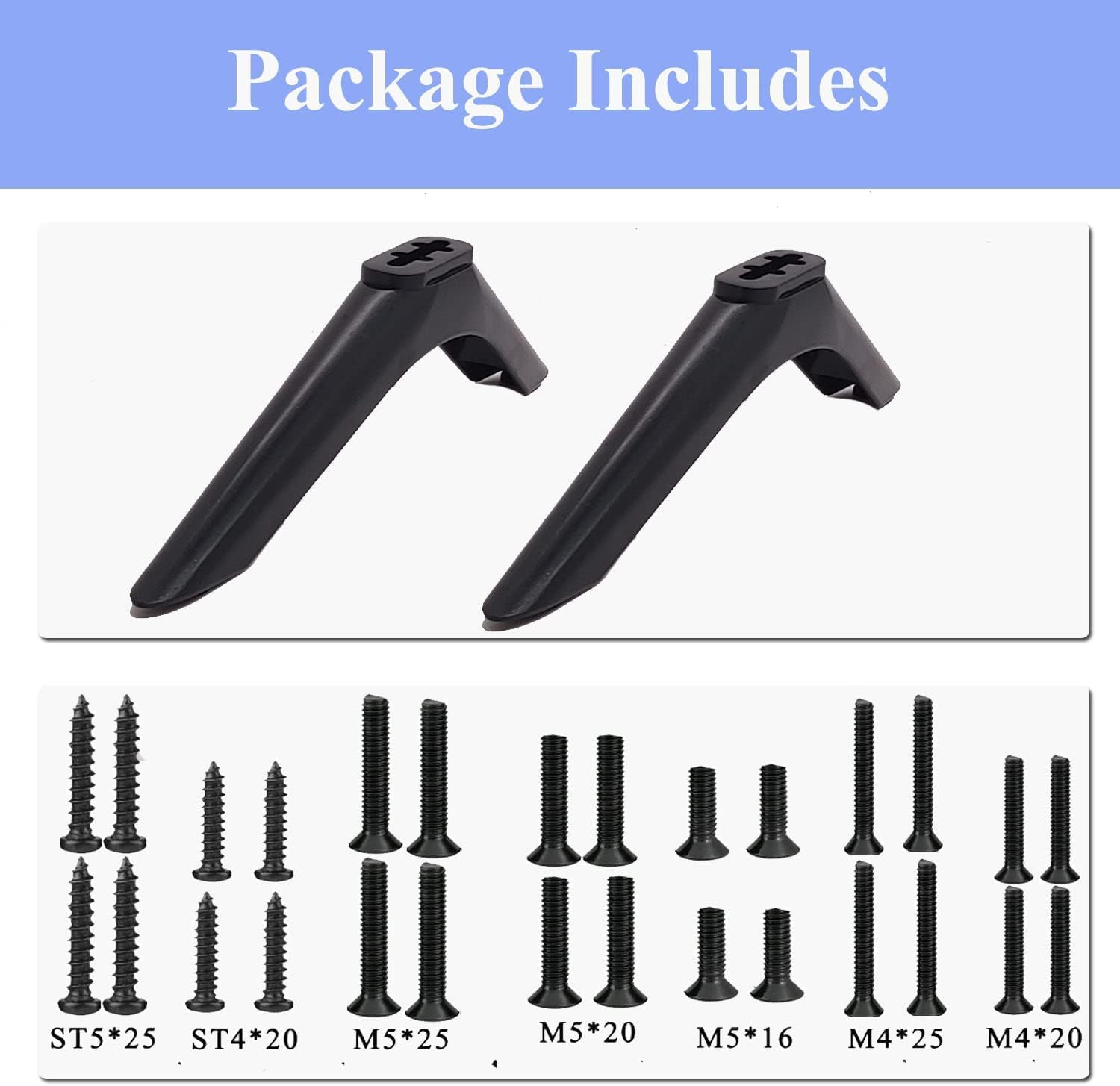 - 5.Package included : 2 x stand feet for 20-50 inch tvs, 1 x screw set, 1*instruction. Great for small and medium screen tv. Nice replacement stands feet for RCA Roku TVs and other tvs with suitable screw holes.(please measure before get the product) Note: It’s not for TV screens that need inserted stands