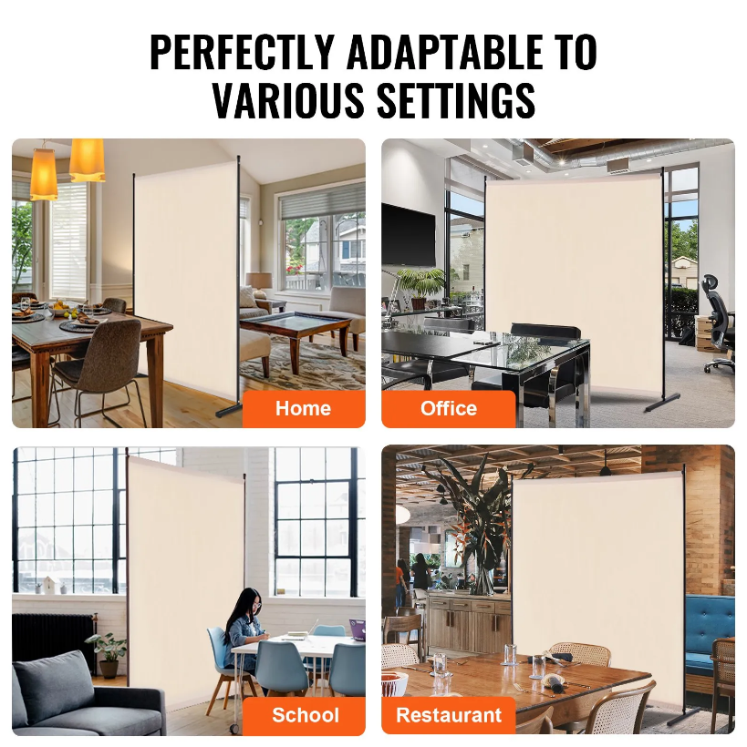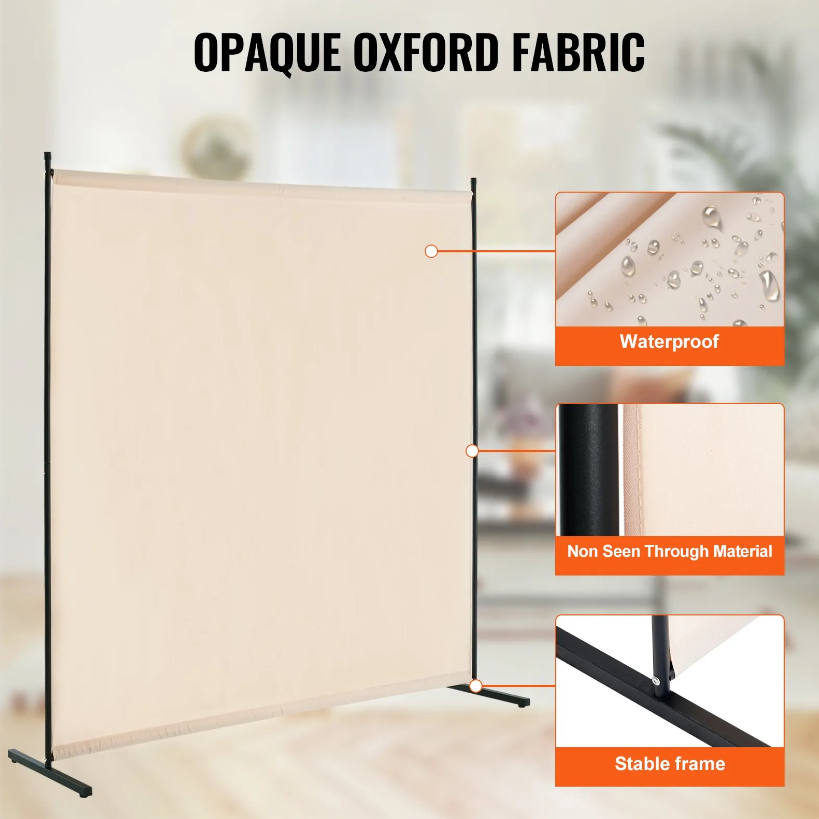 VEVOR 6FT Room Divider Single Panel Fabric Room Screen for Office Bedroom Beige