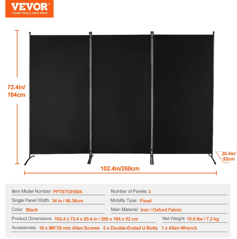 VEVOR Room Divider 3 Panels Fabric Room Privacy Screen for Office Bedroom Black