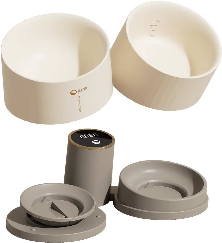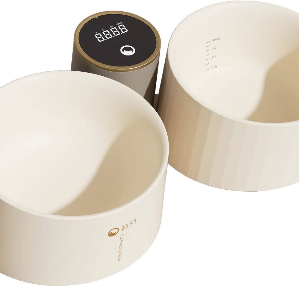 Unique Bowl Design for Ergonomic Feeding The food bowl features a rounded and shallower bottom and integrates with the scale on the stand for direct weighing. The water bowl is deeper to hold more water and lists measurements on the inside. Both bowls are designed with a 10-degree tilt to balance maximizing capacity with minimizing strain on your pets, compared to feeding and drinking with typical bowls. Detachable Bowls can be easily detached for cleaning and used standalone. Bowls can be twisted into the stand, while non-slip grips at the base of the stand prevent any playful pets from pushing the bowls around.